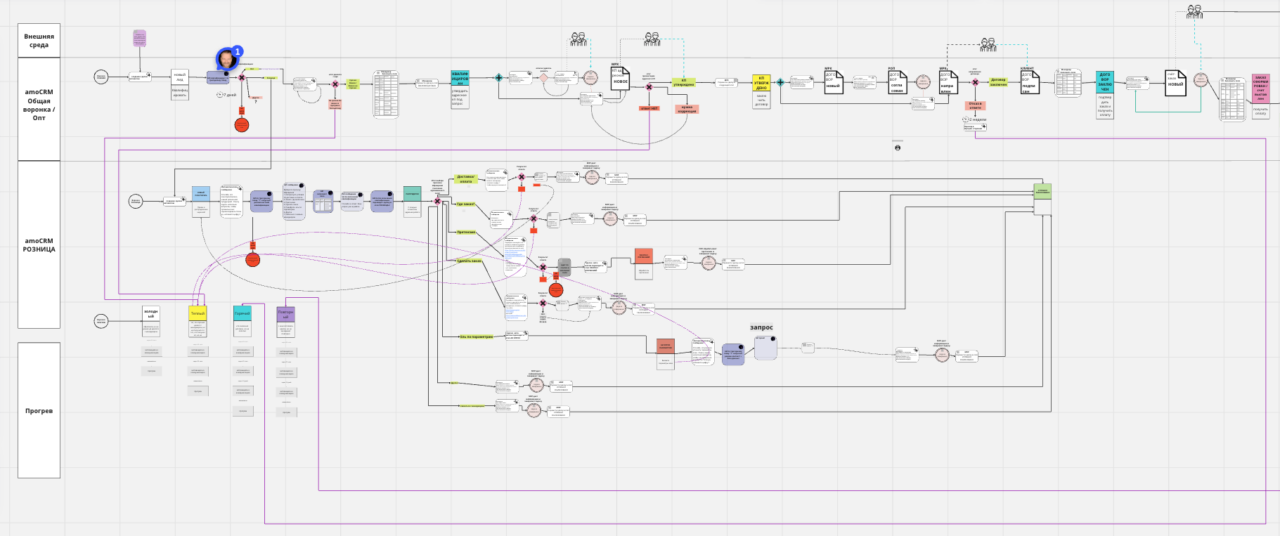Но не пугайтесь, собственнику не нужно погружаться во все технические особенности системы и разбираться в этом. Схему мы составляем для того, чтобы дальше перенести из нее алгоритмы и интегрировать их вместе с amoCRM или Битрикс24.
