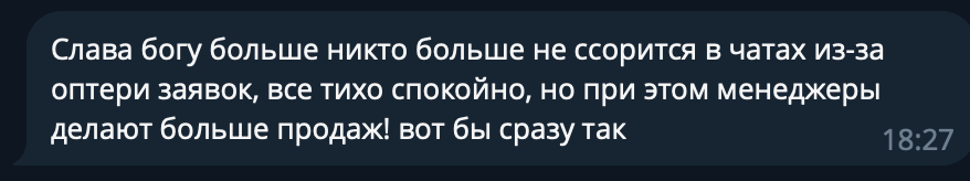 «Раньше в нашем чате постоянно были крики: "Почему никто не взял в работу этого клиента?!". Сейчас это просто исчезло. Всё стало на автомате, а продажи пошли вверх!» — делится директор компании.